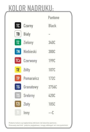 Obok przedstawiamy kolory w jakich drukujemy,