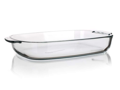 Prostokatna misa o pojemności 3,5 l wykonana jest z twardego szkła borokrzemianowego, które jest bardzo odporne mechanicznie i termicznie (odporność +300/-40 stopni).