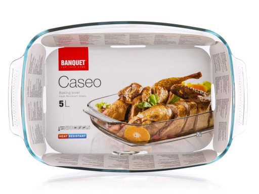 Prostokątna forma szklana CASEO 5 l nadaje się do pieczenia i jest bardzo wytrzymała mechanicznie i termicznie (odporność + 220 / - 25 st.C).