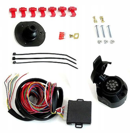 Jest to adapter pozwalający połączyć przyczepę posiadającą wejście 7-pinowe (typ Polski) do samochodu który posiada gniazdo z 13 pinami (typ Europejski).