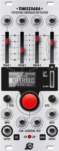 XAOC Timiszoara to stereofoniczny sterowany napięciem, wieloefektowy procesor sygnałowy oparty na popularnym układzie DSP Spin Semiconductor FV-1. Posiada pełną ścieżkę sygnału stereo z dwoma regulowanymi wejściami audio, dwoma wyjściami i mikserem sterowanym napięciem stereo typu wet/dry. Dodatkowo na przednim panelu znajduje się gniazdo kart pamięci microSD, które pozwala na ładowanie fabrycznych i niestandardowych efektów bez żadnych ograniczeń i ochrony praw autorskich, co oznacza, że można korzystać z wielu ustawień gotowych efektów oraz tworzyć własne.