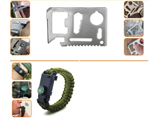 - Bransoletka survivalowa z linką paracord, kompasem, gwizdkiem i krzesiwem