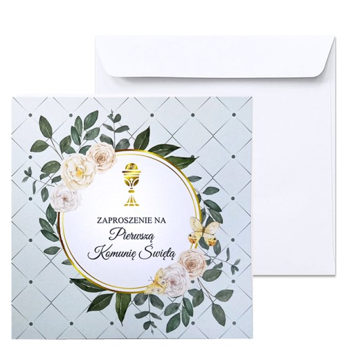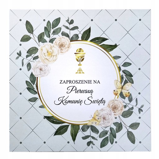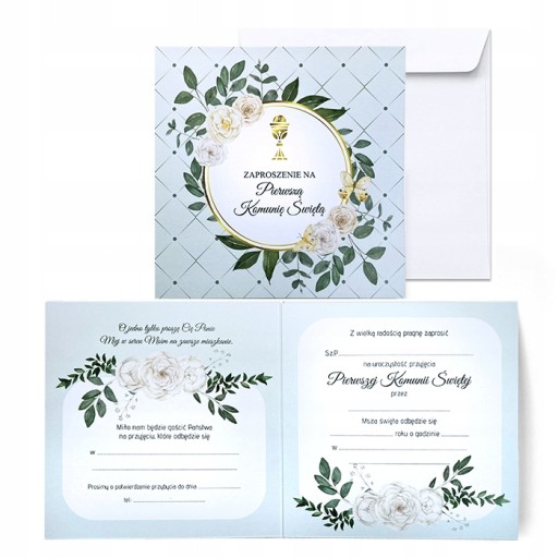 Ekskluzywne zaproszenie EKO komunijne wycinane laserowo z gotowym tekstem do ręcznego wypisania.