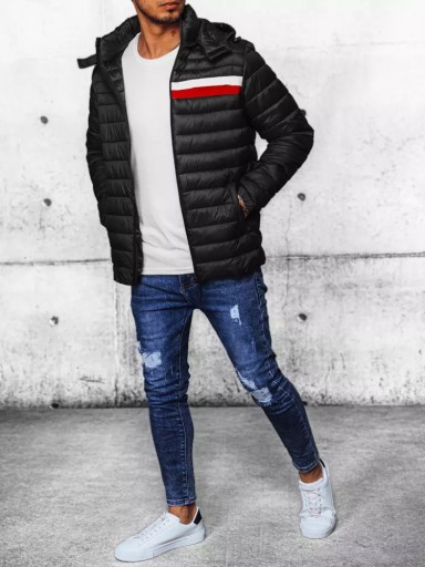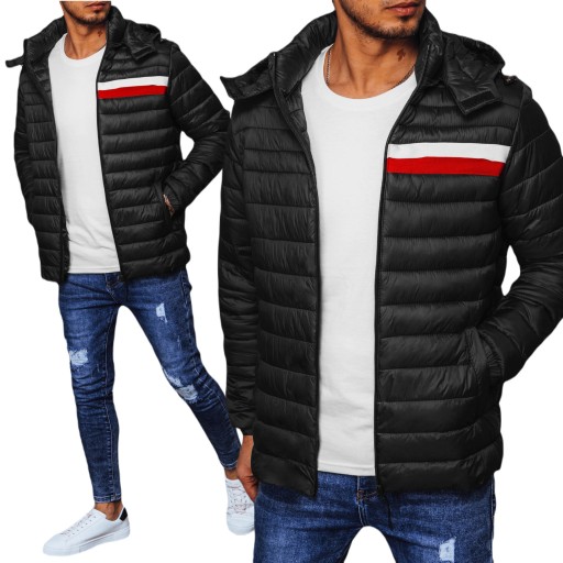 - Męska kurtka przejściowa, pikowana z kapturem.
