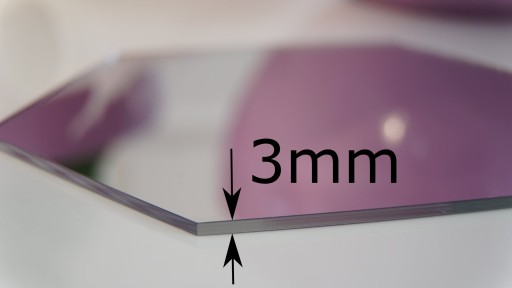 Oferujemy Państwu lustro o grubości 3mm. Takie lustro precyzyjniej odzwierciedla kształty od cieńszych zamienników. Cięcie luster odbywa się laserowo dzięki czemu otrzymujemy ładny, szklisty brzeg.