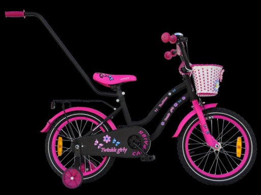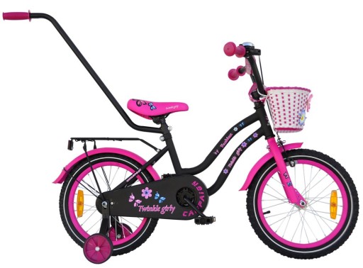 Rower dziecięcy na kołach 16 cali TWINKLE GIRLY Fashion BLACK/Pink MAT