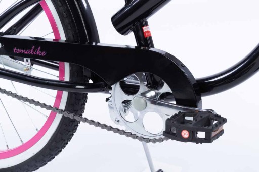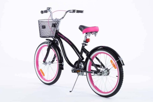 Rowerek dziecięcy typu Cruiser z pompowanymi 20calowymi kołami. Posiada on stalową ramę, solidne i dokładne wykonanie. Dodatkowo w wyposażeniu znajduje się koszyk, gumowe rączki,dzwonek.Dodatkowe odblaski, oraz brak tępych krawędzi i osłona łańcucha powodują, że rowerek jest bezpieczny dla dziecka jak i widoczny dla otoczenia.