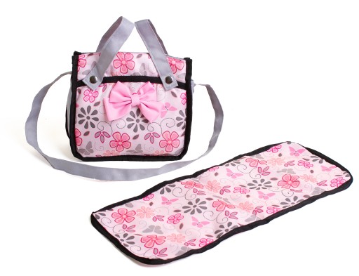 W torbie schowany został podkład do przewijania w dopasowanej do wózka kolorystyce, który posłuży gdy laleczkę trzeba będzie przebrać lub zmienić jej pieluszkę.