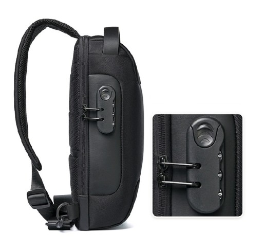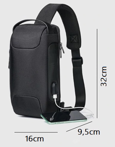 Plecak miejski jednoramienny z systemem antykradzieżowym, oraz portem USB