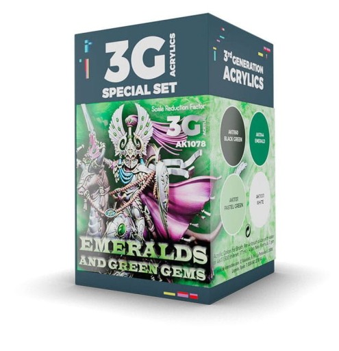 Ten zestaw trzeciej generacji zawiera wybór kolorów do malowania klejnotów na zielono. Zawiera 4 odcienie, które można łatwo łączyć, aby namalować realistyczne szmaragdy i efekty klejnotów na swoich figurach.