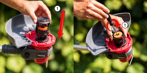 Osłonę można w każdym momencie wymontować, natomiast ostrza nylonowe w głowicy są bardzo praktyczne, ze względu na prostą wymianę, widoczną na zdjęciu