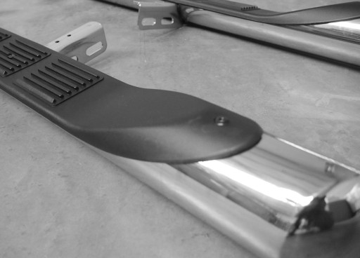 Orurowanie boczne wykonane ze stali nierdzewnej. Posiada wgłębienia wypełnione tworzywem ABS. Polerowane wykończenie rury o średnicy 80mm.