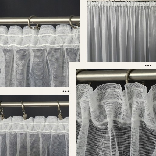 - Możliwość upięcia i zawieszenia: żabki lub agrafki (karnisz rurowy lub szyna sufitowa)
