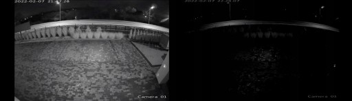 Kamery z zestawu posiadają wbudowane mocne diody IR doświetlające obserwowany obszar nawet do 25m. Zapalają się automatycznie po zapadnięciu zmroku i są niewidoczne do ludzkiego oka. Oznacza to, że w przypadku niewystarczającego oświetlenia, przełącza się w tryb czarno-biały i nawet w zupełnej ciemności przesyła obraz z monitorowanego obszaru. Poniżej rzeczywisty obraz z kamery z diodami IR, oraz bez wbudowanych promienników podczerwieni.