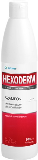 Hexoderm jest dermokosmetykiem weterynaryjnym, regulującym mikroflorę skóry, stabilizującym jej pH oraz zapobiegającym wysuszaniu poprzez pozostawienie cienkiej warstwy tłuszczowo-białkowej. Zawarte w szamponie łagodne środki myjące pozwalają na częste stosowanie.