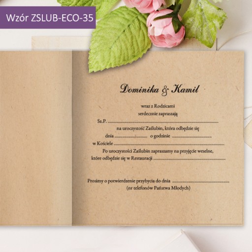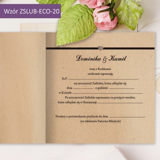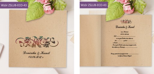 - Prześlij: Wzór zaproszenia, imiona Państwa Młodych + dane, zdjęcie
