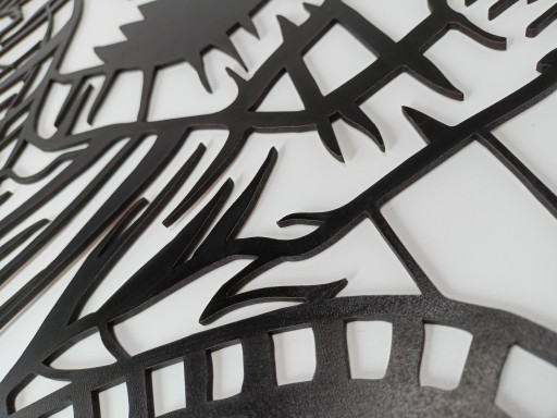 Piękna, lekka i oryginalna dekoracja ścienna wykonana z płyty HDF o grubości 3mm, ciętej laserowo. Dzięki zastosowaniu nowoczesnej technologii cięcia laserowego dekoracja wygląda zjawiskowo i estetycznie.