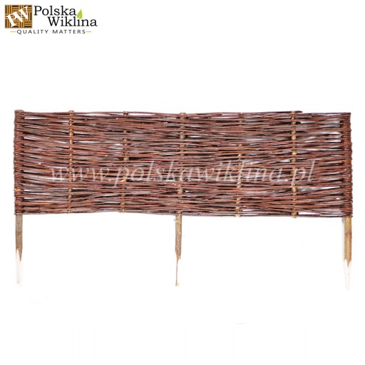 - Wykonanie: Płotek wiklinowy (inaczej palisada wiklinowa) wykonany jest ręcznie z drewnianych kołków oraz z najwyższej jakości naturalnej, polskiej wikliny, która jest nieokorowana, dzięki czemu uzyskujemy ciemny kolor.