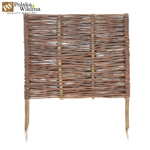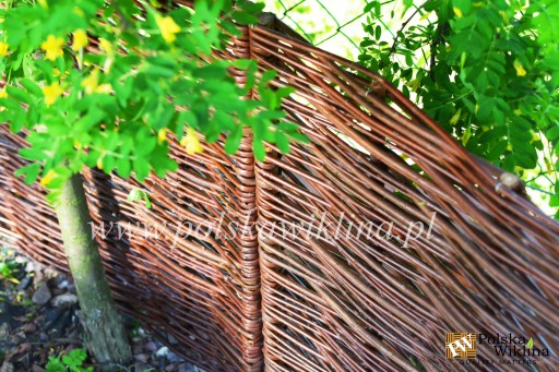 - Wykonanie: Płotek wiklinowy (inaczej palisada wiklinowa) wykonany jest ręcznie z drewnianych kołków oraz z najwyższej jakości naturalnej, polskiej wikliny, która jest nieokorowana, dzięki czemu uzyskujemy ciemny kolor.