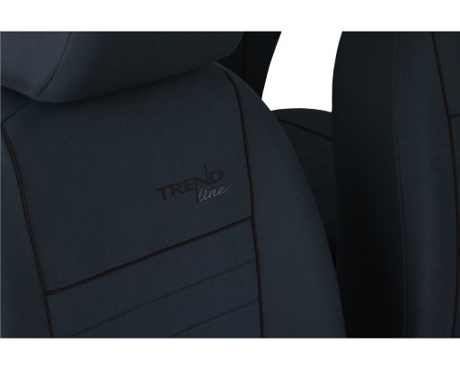 Pokrowce miarowe TREND LINE wykonane są z dzianiny tapicerskiej w kolorze popielatym – nowością w ofercie jest tłoczona faktura materiału zastosowanego na pas środkowy. Atutami tego typu tkaniny oprócz walorów estetycznych jest również lepsza cyrkulacja powietrza, która zwiększa komfort użytkowania. Między łączeniami materiałów zastosowano lamówkę, co znacznie polepsza trwałość produktu. Dodatkowo możliwość wyboru jej koloru nadaje indywidualny charakter pokrowcom.