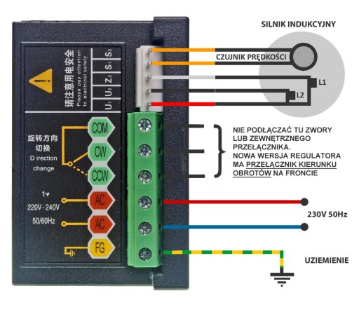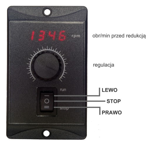 - przełącznik kierunku i zatrzymania na froncie regulatora