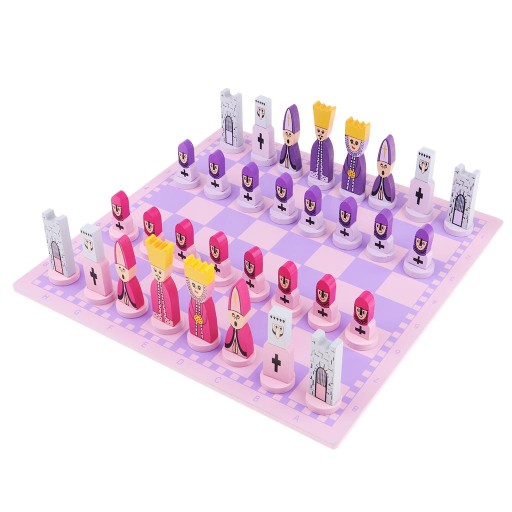 3x Drewniana międzynarodowa gra w szachy Chessman Checker Szachy Prezent Różowy