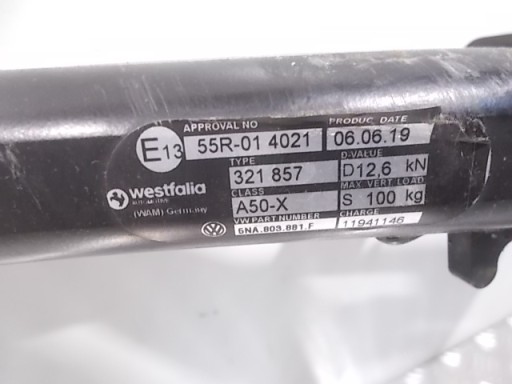 ORYGINALNY SKŁADANY HAK HOLOWNICZY FIRMY WESTFALIA WIDOCZNY NA ZDJĘCIU VW TIGUAN II MODEL 5NA NR 5NA803881F ROCZNIK 2015-2023.