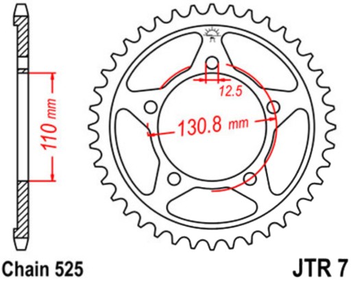 - Zębatka tylna stalowa JT R7-45, 45Z, rozmiar 525