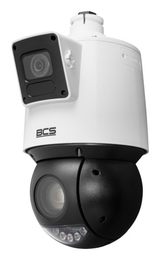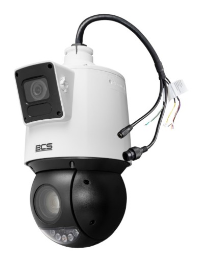 Zewnętrzna kamera obrotowa IP 4Mpx z obiektywem motozoom 4.8-120mm. Oprócz tradycyjnego modułu kamery PTZ, posiada również wbudowaną kamerą stałopozycyjną 4Mpx z obiektywem 4mm. Kamera posiada różne funkcje, m.in. AWB, AGC, BLC, HLC, WDR(120dB) i inne pozwalają na prezentowanie obrazu lepszej jakości. Kamera zasilana jest napięciem12V DC lub PoE(802.3at) i posiada obudowę zewnętrzną IP66.