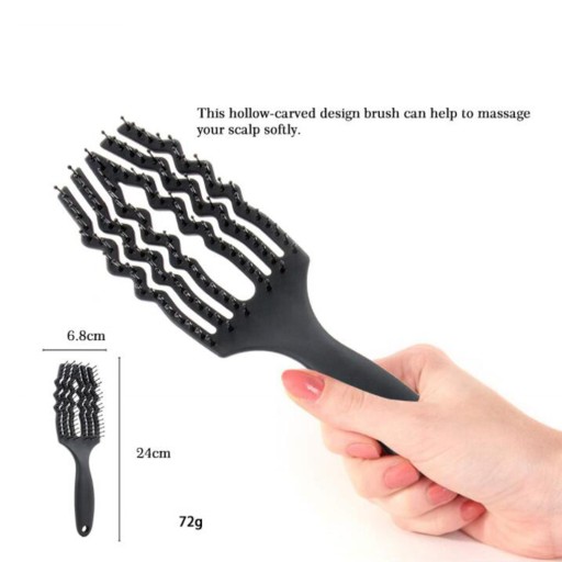 Grzebień z szerokimi zębami - Równomiernie rozłożona szczotka, gładko rozczesuje włosy, delikatnie masuje skórę głowy.