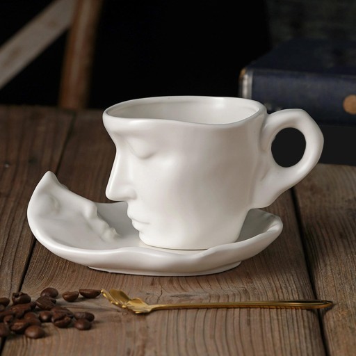 Kubki z ludzką twarzą: Znakomity design, z łyżeczką w kształcie kwiatu i podstawką z ludzką twarzą, piękną i delikatną, wniesie artystyczny motyw do twojego stołu.