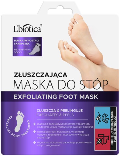 L'BIOTICA Maska złuszczająca do stóp w postaci nasączonych skarpetek 1 para