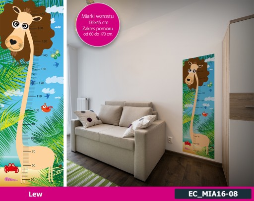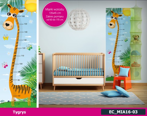 - Przedmiotem sprzedaży jest miarka wzrostu (naklejka ścienna) wycięta po obrysie o wymiarze 45 cm x 135 cm folii matowej.