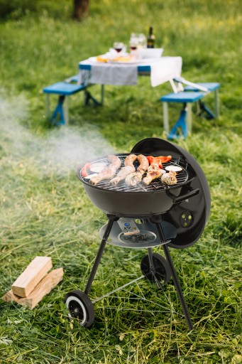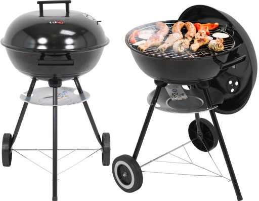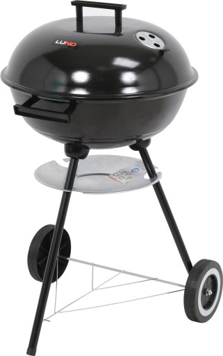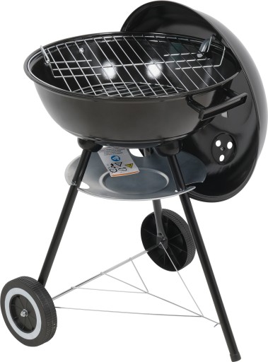Grill został wyposażony w dwie rączki i dwa trwałe, plastikowe kółka, które pozwalają na swobodne przemieszczanie i transport. Pokrywa z uchwytem pomoże utrzymać odpowiednią temperaturę, a chromowany ruszt o średnicy 41 cm - na przygotowanie potraw bez przywierania.