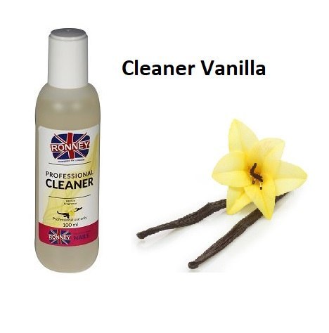 RONNEY - Profesjonalny cleaner do paznokci o zapachu wanilii CLEANER VANILLA 100 ml Odtłuszczacz o przyjemnym waniliowym zapachu. Właściwości: doskonale usuwa cienką, klejącą warstwę powstałą po utwardzeniu lakieru hybrydowego lub żelu w lampie UV i UV LED sprawdza się również w odtłuszczaniu i usuwaniu zanieczyszczeń z naturalnej płytki paznokcia przed zabiegiem manicure zwiększa przyczepność masy hybrydowej, żelowej lub akrylowej, co wpływa na trwałość Twojego manicure dzięki naszemu Cleanerowi Twoje paznokcie nabiorą niezwykłego blasku Pojemność: 100 ml ,