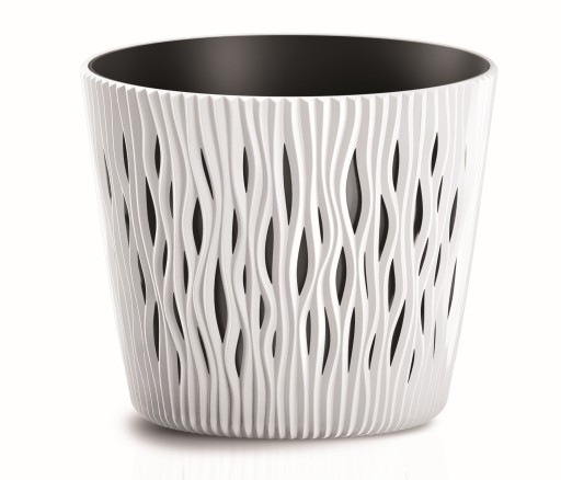 Doniczki z rodziny SANDY są inspirowane ręcznie modelowaną, tradycyjną ceramiką. Gra świateł na niezwykle efektownych żłobieniach, nadaje im dekoracyjnego wymiaru. Na uwagę zasługuje ich faktura z pofalowanymi pionowymi żłobieniami które częściowo odsłaniają kolor znajdującego się w środku wkładu co nadaje dodatkowego efektu kolorystycznego.