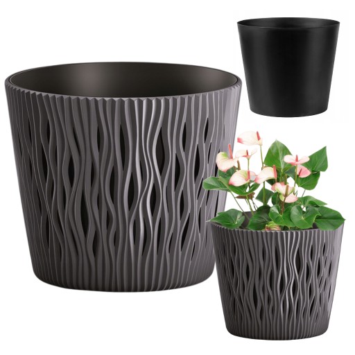 ЦВЕТОЧНЫЙ ГОРШОК SANDY ROUND DSR190 АНТРАЦИТОВЫЙ + ВСТАВКА