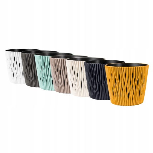 Doniczki z rodziny SANDY są inspirowane ręcznie modelowaną, tradycyjną ceramiką. Gra świateł na niezwykle efektownych żłobieniach, nadaje im dekoracyjnego wymiaru. Na uwagę zasługuje ich faktura z pofalowanymi pionowymi żłobieniami które częściowo odsłaniają kolor znajdującego się w środku wkładu co nadaje dodatkowego efektu kolorystycznego.