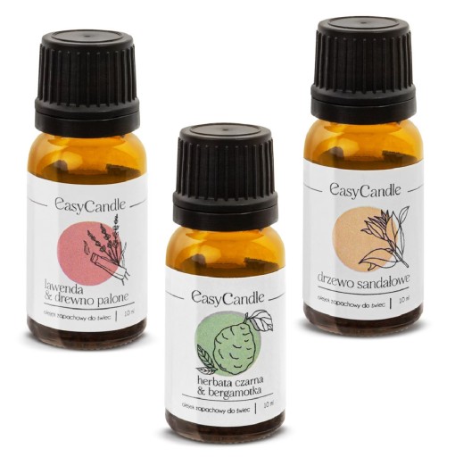 - 3 olejki 10 ml (lawenda & drewno palone, drzewo sandałowe, herbata czarna & bergamotka),