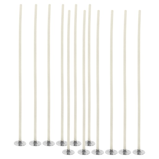 - Podczas gdy wosk się rozpuszcza, przygotuj knoty. Przymocuj do dna pojemnika, a następnie przeciągnij przez dziurkę w patyczku do usztywniania knota.