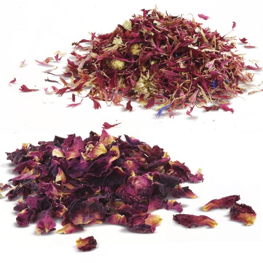 zawartość: 1x suszone róże, 1 x suszone chabry czerwone,