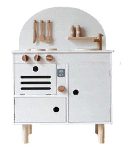 Pięknie zaprojektowana, drewniana kuchnia wykonana z dbałością o nawet najmniejszy szczegół do zabawy dla Twojego dziecka.