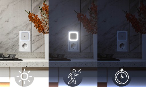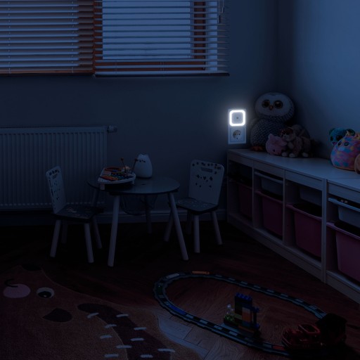 Lampka nocna z czujnikiem zmierzchu. Idealne rozwiązanie do doświetlenia ciemnych pomieszczeń. Dzięki czujnikowi zmierzchu sama wie kiedy zacząć świecić i w jakim natężeniu. Sprawdzi się również w pokoju dziecka, aby mogło komfortowo i bezpiecznie czuć się podczas przebudzenia w nocy. Lampka zapewnia delikatne światło- nie przeszkadza podczas snu, ale idealnie oświetli pomieszczenie.