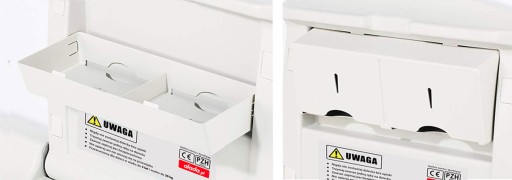 - Pojemnik na chusteczki do higieny: podwójny,otwierany poprzez odchylenie jego górnej części