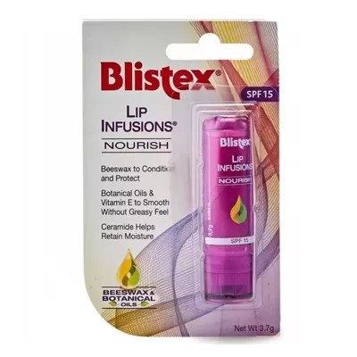 Blistex Lip Infusions Nourish to balsam, który dostarcza skórze ust skoncentrowanych składników odżywczych. Dzięki połączeniu bogatej kompozycji olejków roślinnych i witaminy E, balsam doskonale zmiękcza i wygładza usta, bez pozostawiania na ich powierzchni tłustego filmu.