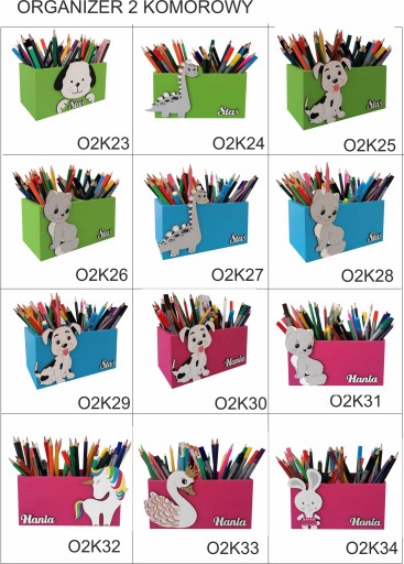 UWAGA:W skład przybornika na kredki nie wchodzą prezentowane na zdjęciach: kredki , pędzle, linijki - zostały one wykorzystane jedynie na potrzeby sesji zdjęciowej