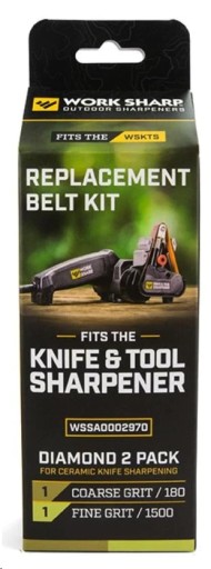 Zestaw 2 diamentowych pasów ściernych o gradacji 180 i 1500, dedykowanych do ostrzałek elektrycznych Work Sharp WSKTS oraz Work Sharp Ken Onion Edition.