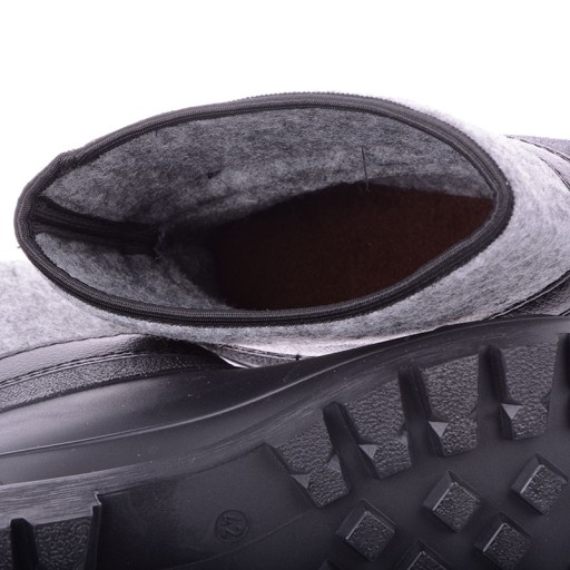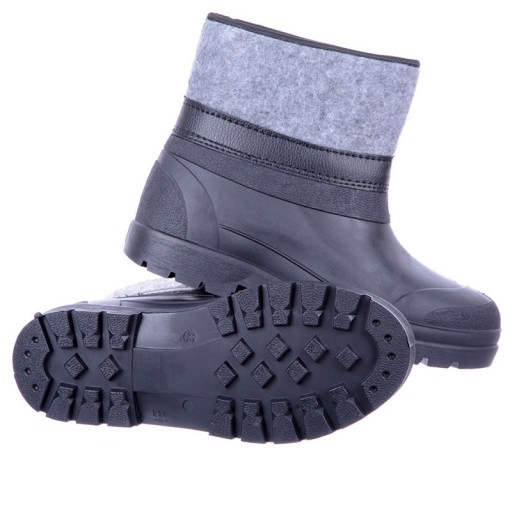 Męskie buty robocze - gumofilce z wysoką wygodną cholewką polskiego producenta obuwia Łukpol. Ich cholewka w całości wykonana została z Termokauczuku z dodatkiem filcu. Wyściółka została zrobiona z dzianiny filcowej wysokiej jakości. Buty posiadają grubą i twardą podeszwę idealne sprawdzającą się w trudnych warunkach oraz zapewniającą świetną przyczepność podczas chodzenia.