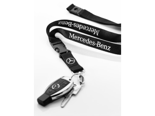 Smycz Mercedes-Benz urzeka klasycznym i ponadczasowym designem w kolorze czarnym, który dodatkowo podkreśla biały logotyp Mercedes-Benz i srebrne logo gwiazdy. Ale smycz robi wrażenie nie tylko pod względem wizualnym. Jest również bardzo praktyczny. Grillowana smycz poliestrowa ma około 45 cm długości i ma czarny plastikowy zatrzask bezpieczeństwa z tyłu szyi, który automatycznie zwalnia się pod dużym napięciem. Chromowany karabińczyk na wysoki połysk z odlewanego ciśnieniowo cynku ułatwia mocowanie i wyjmowanie kluczy itp.