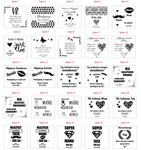 - W wiadomości dla sprzedającego lub na adres e-mail prześlij nam: numer wzoru, imiona, datę lub własny tekst, wzór.